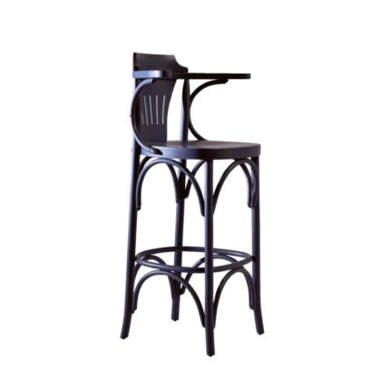 Doğal ahşabın sıcaklığını ve zarafetini modern tasarımla birleştiren bu bar sandalyesi, ahşap kollarıyla öne çıkıyor. Sırt döşemesi olmayan açık oturumu,