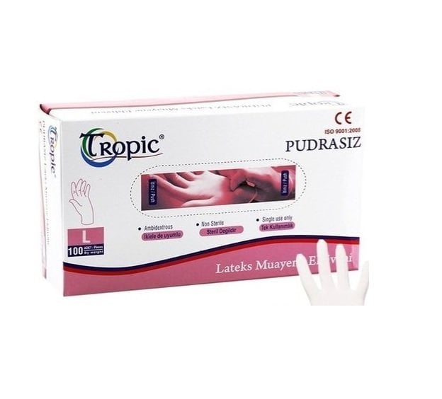 Tropic Pudrasız Lateks Muayene Eldiveni Büyük Boy 100 Adet